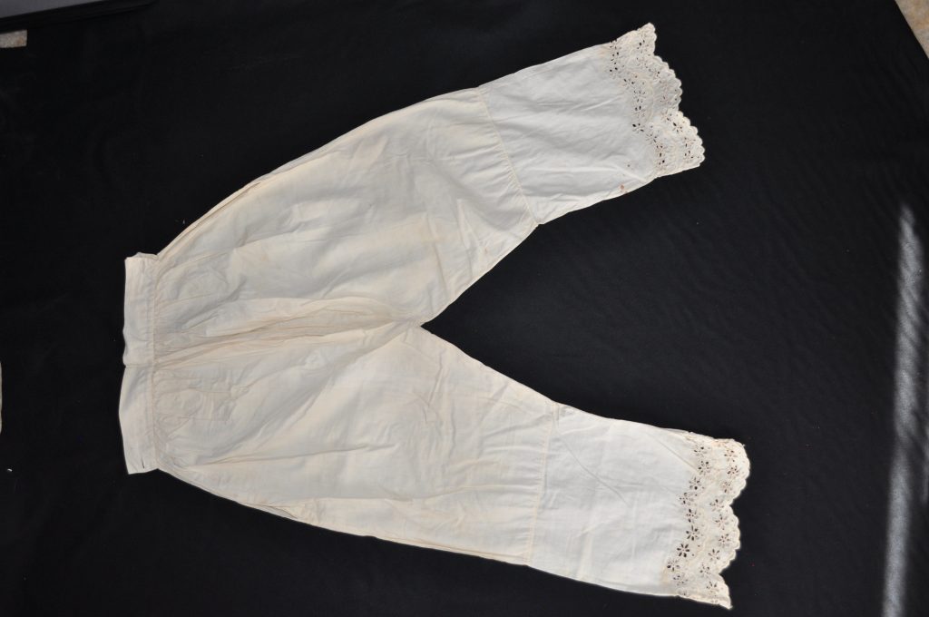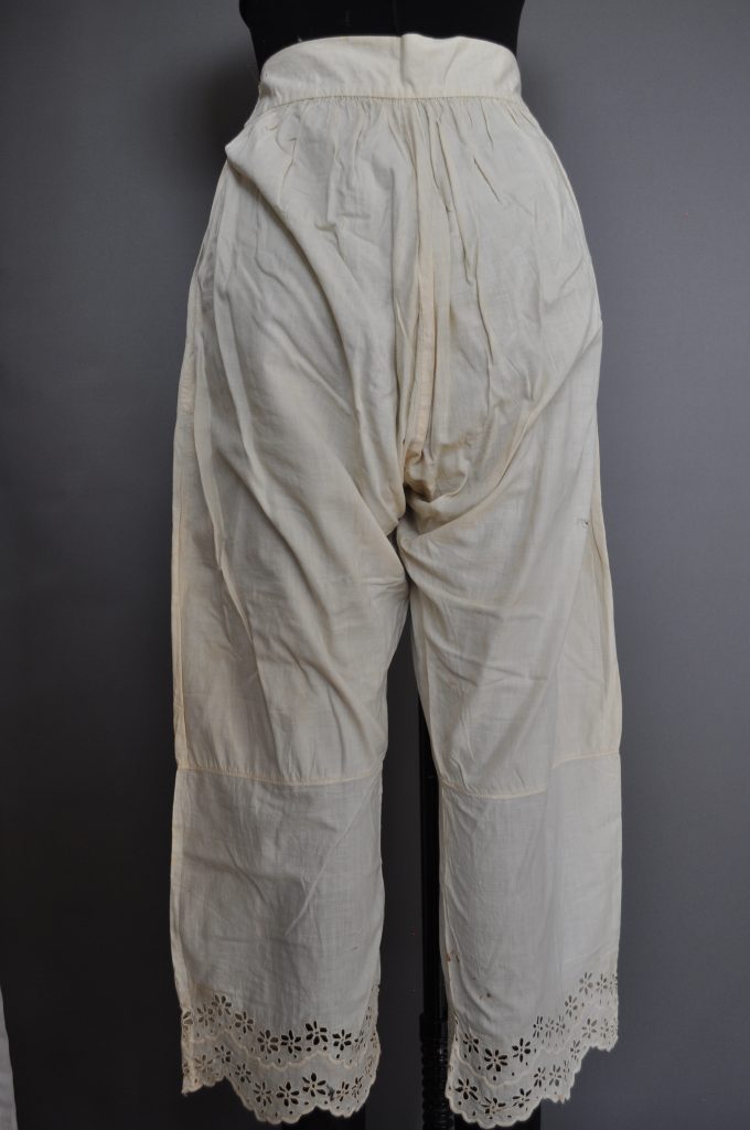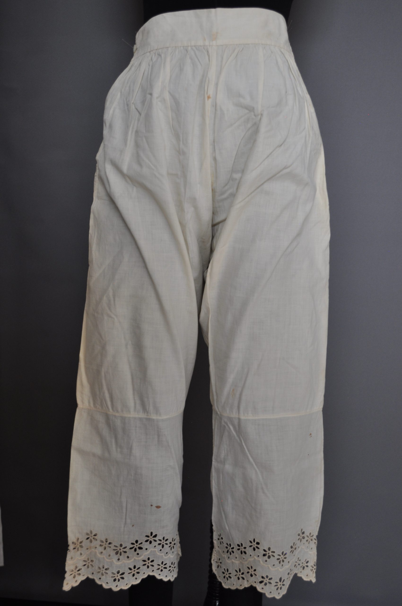 bloomers with eyelette lace at the bottom. button closures at side seams