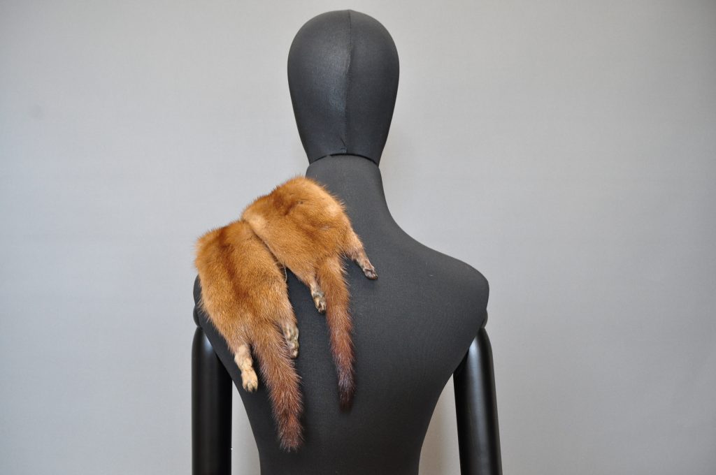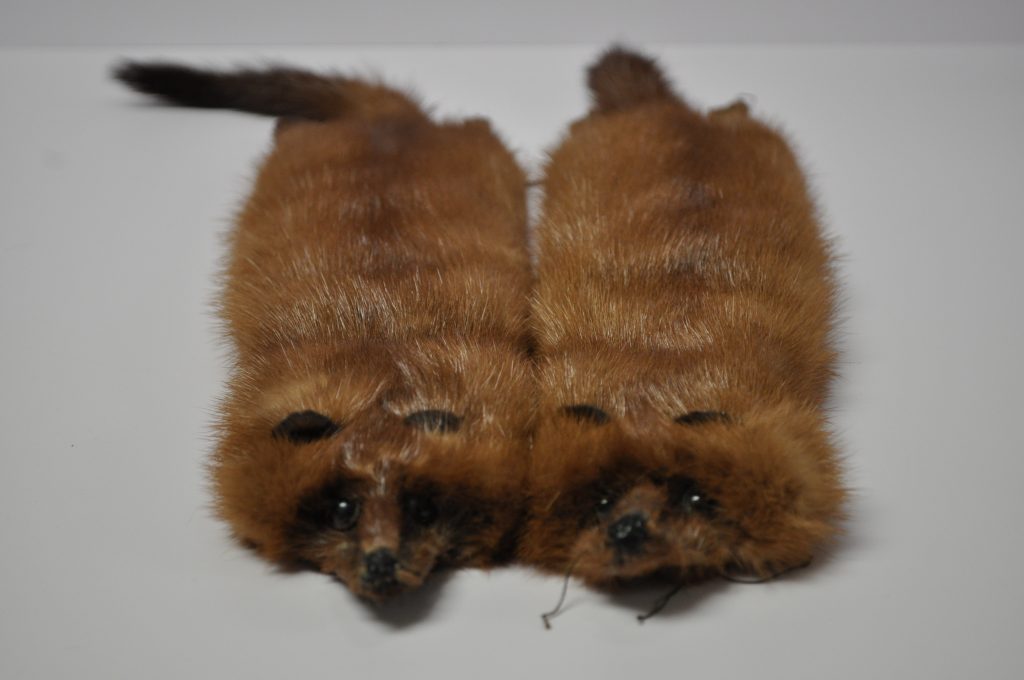 Fur stole, two connected pelts side by side, part of a three-part stole set with 2024154 and 2024155. Lisa Ferrante Perrone, a professor of Italian at Bucknell, donated this piece. It was originally owned by Angela Castagna Formato, born in 1903 and grew up in Manhattan.
