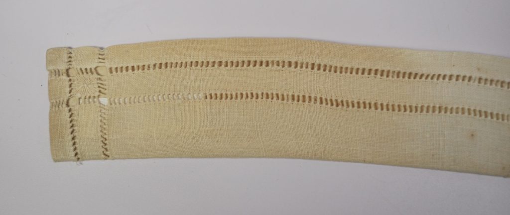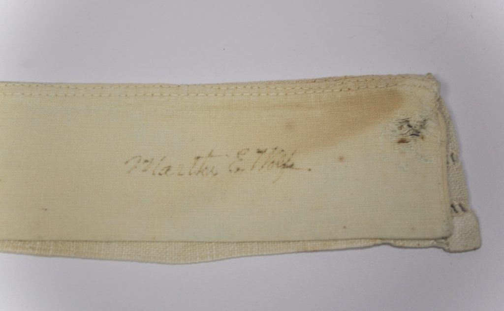 Starched collar with lace detail. Ink reads “Martha E. Wolfe”