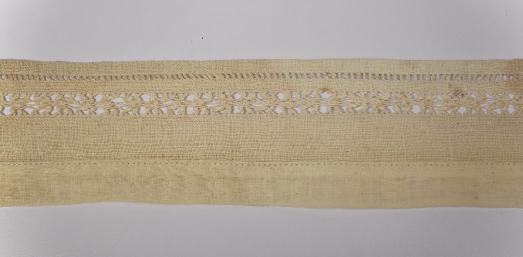 Starched collar with lace detail. Faint ink reads “Martha Wolfe”