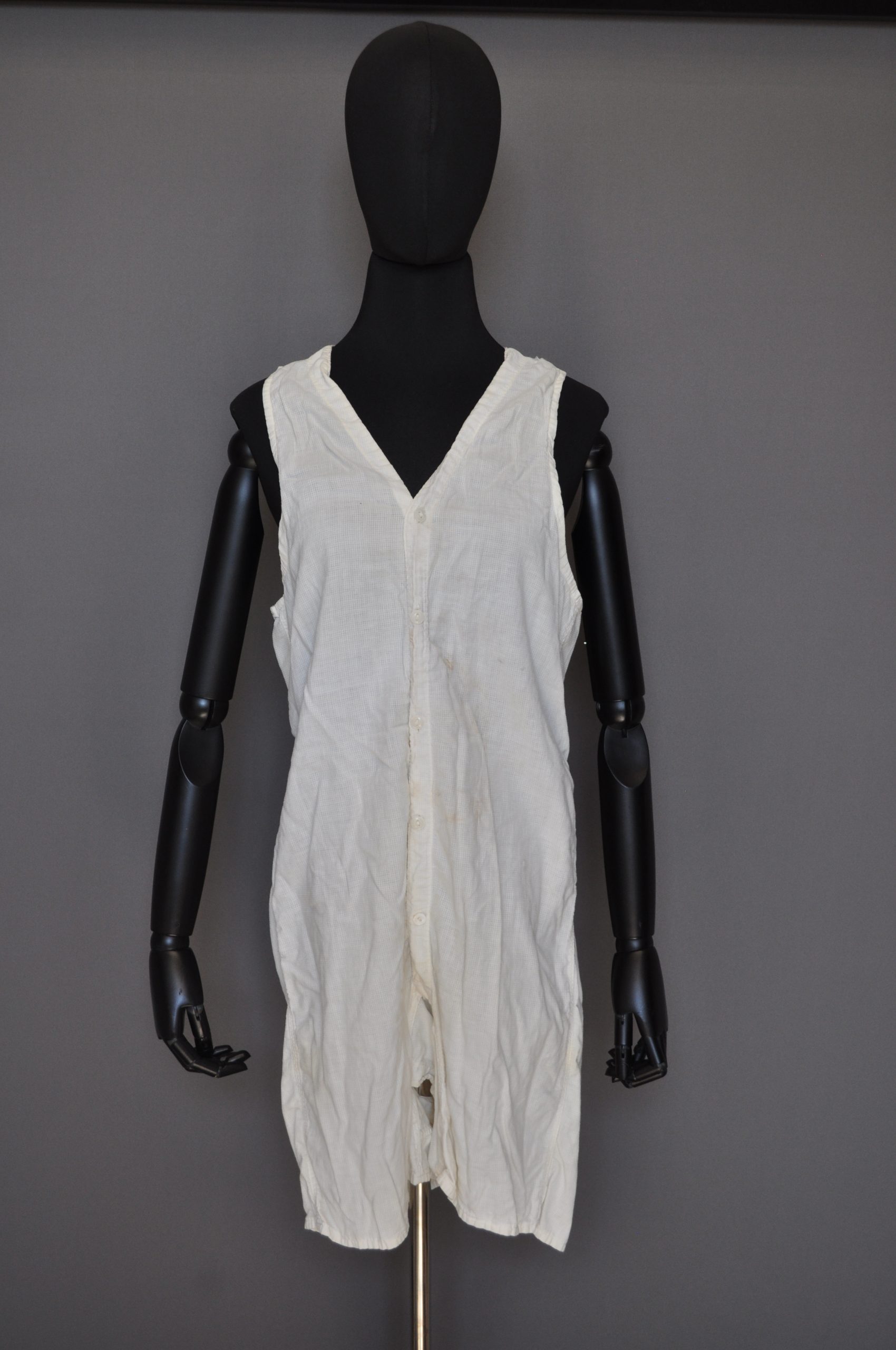 tag reads “Size 40 Penney’s Sanforized” underwear. CF button opening and buttoned opening in rear. band of knit at back waist and two elastic loops at back waist.