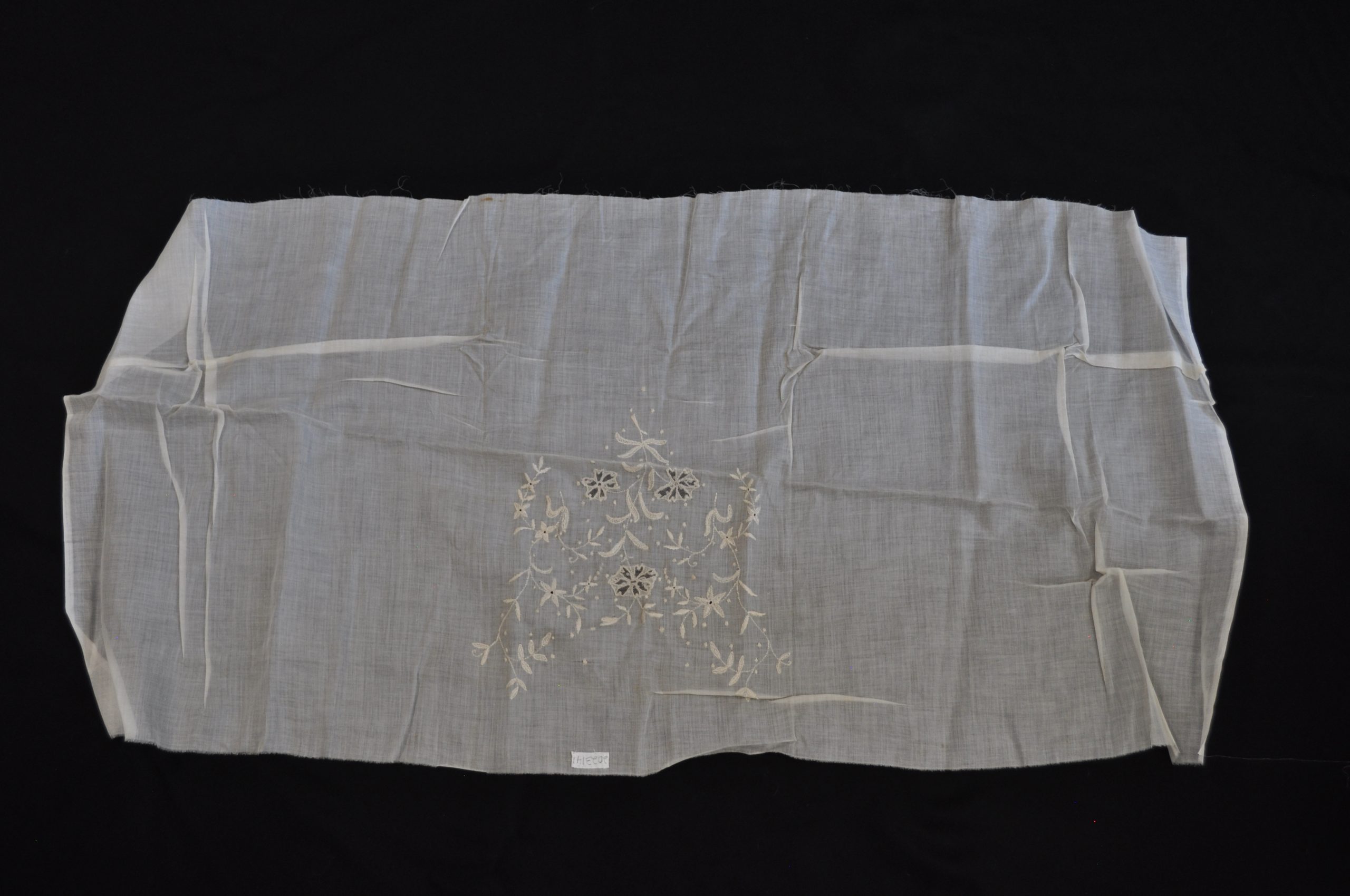 Piece of cotton/ linen fabric with embroidery and pieced lace.