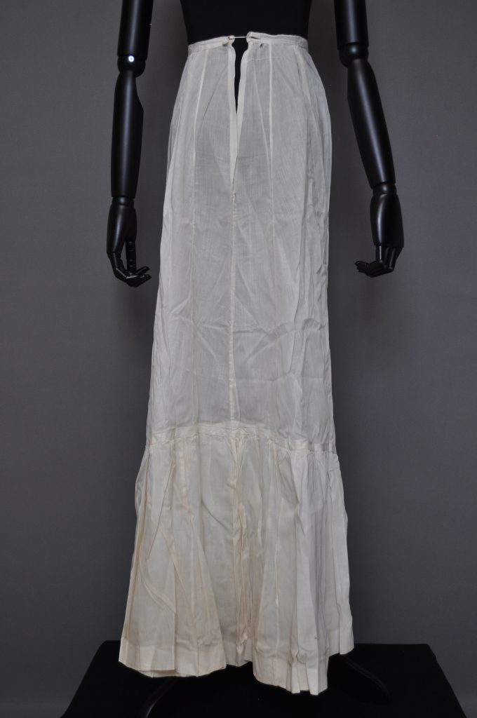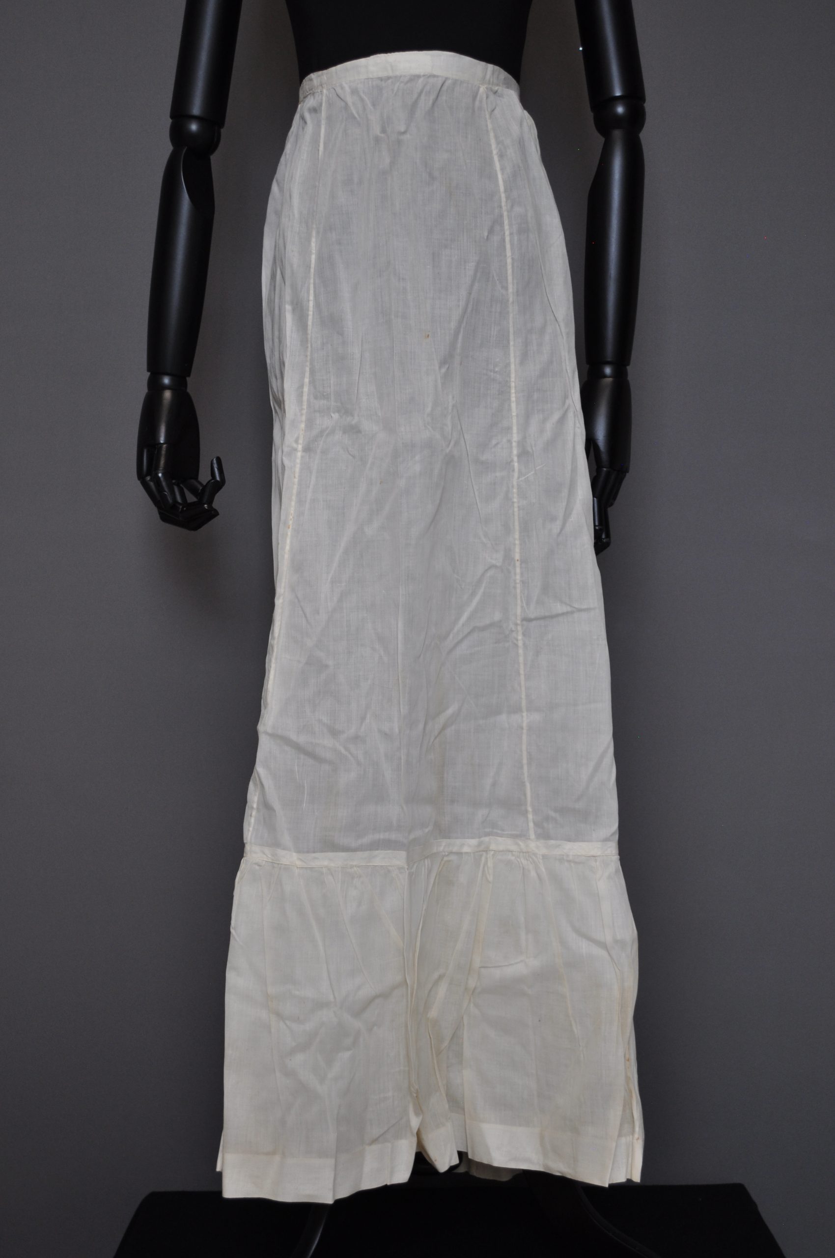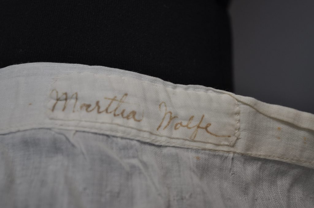 Linen. Cotton paneled petticoat with CB button closure and CF inked name “Martha Wolfe”.