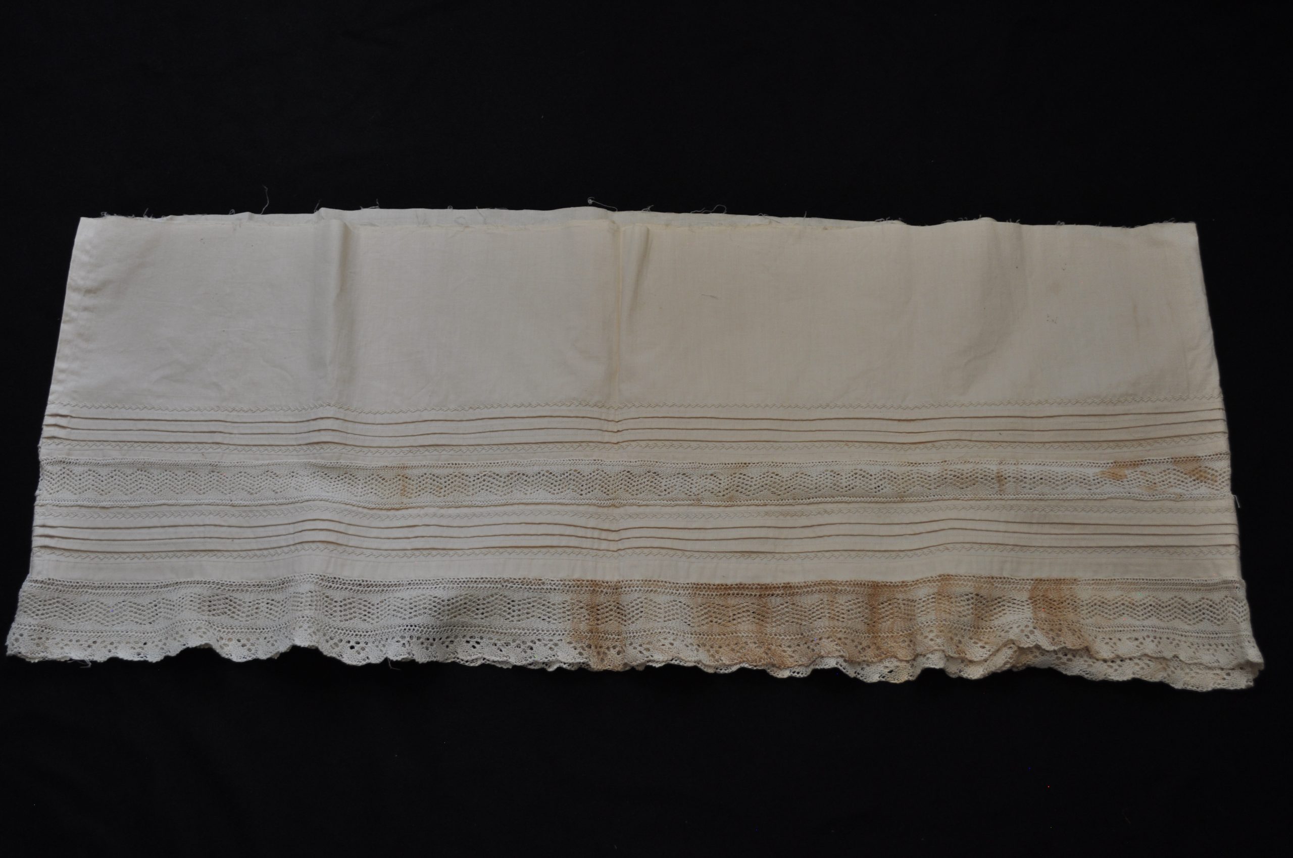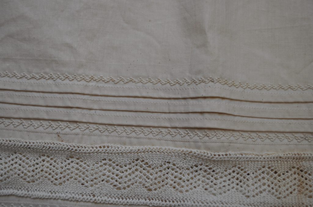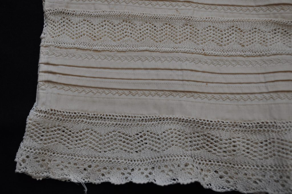 Detached petticoat ruffle. inserted lace, embroidery, and decorative tucks.