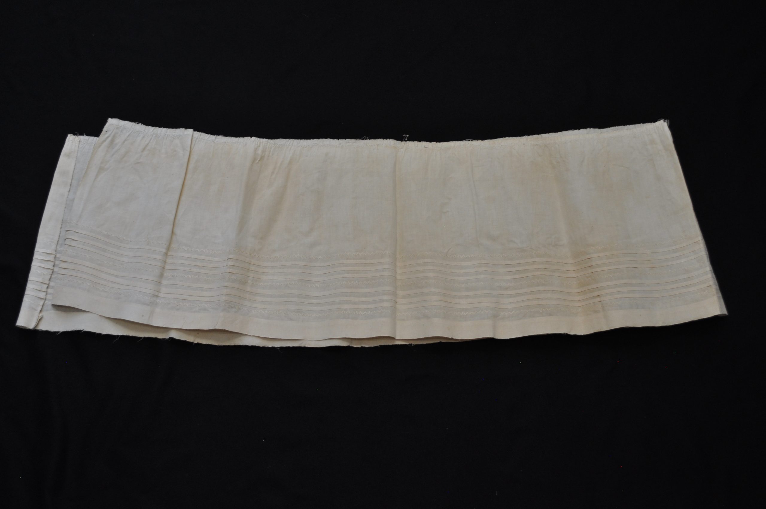 Detached petticoat ruffle. Horizontal tucks and embroidery.