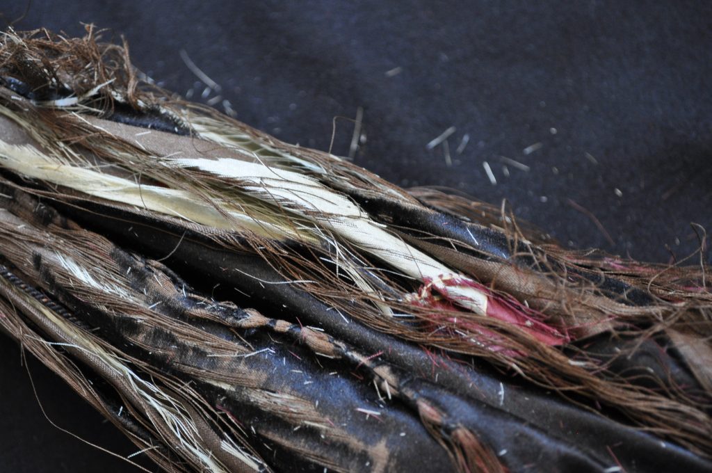 (decommissioned from theater stock) Black parasol with lace and wooden frame.