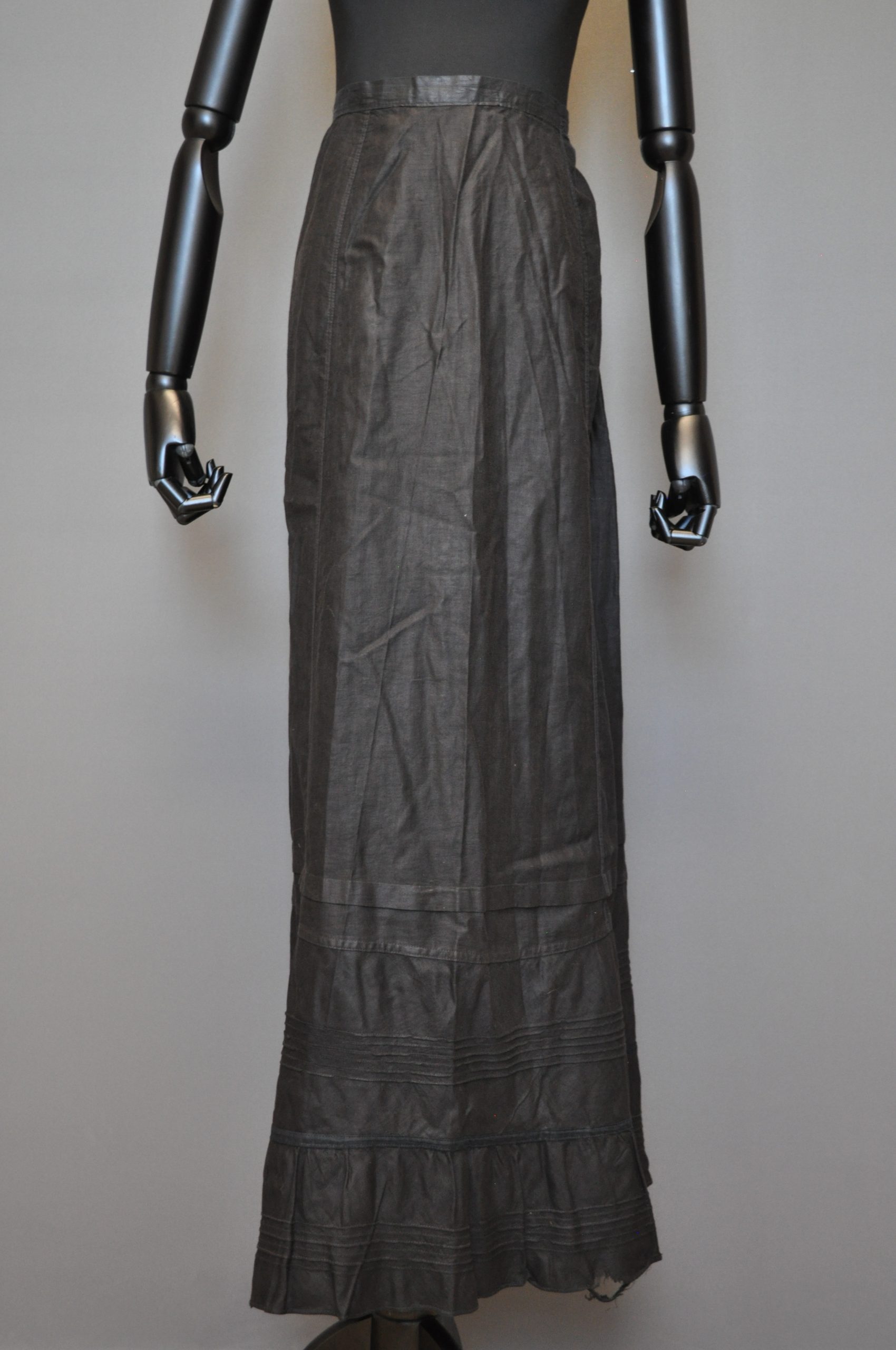 Black petticoat with CB button closure. Decorative tucks at the hem.